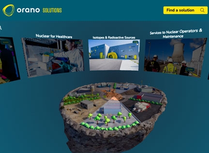 Création graphique animée et développement 3D WebGL du site Orano Solutions pour la Santé, les Installations, les Matériaux & les Combustibles Nucléaires